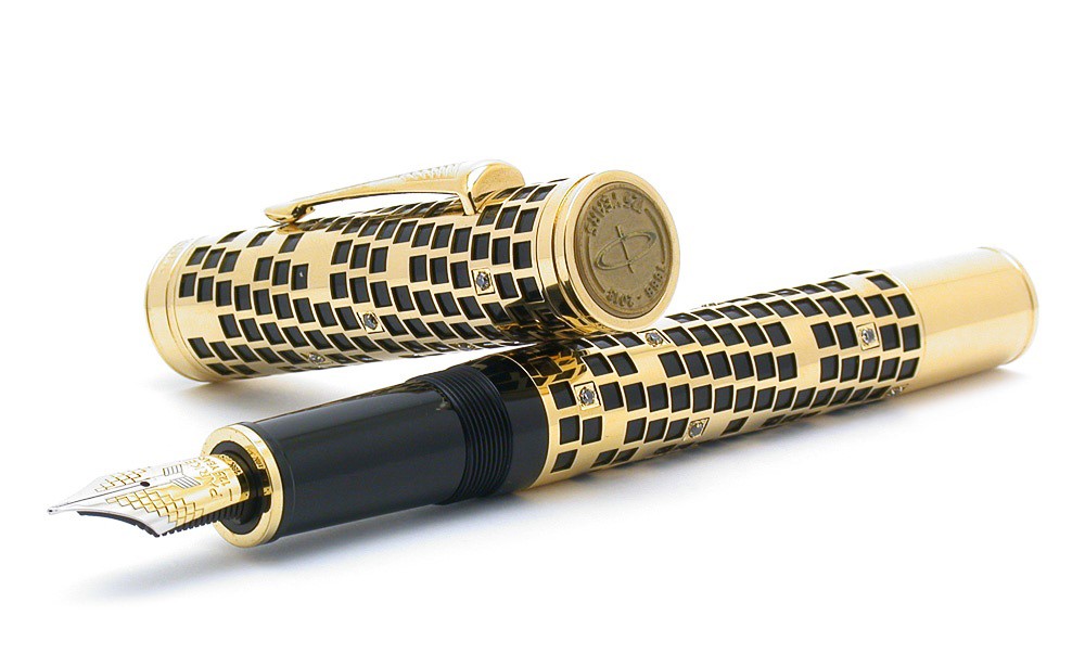 Ngòi bút làm bằng vàng 18K, có hình mũi tên biểu tượng của thương hiệu